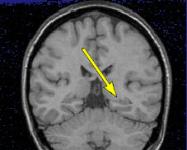 CLINICAL PRESENTATION: This young patient had a history of intractable complex partial seizures or temporal lobe epilepsy. He was referred for a high-resolution MRI of the brain and temporal lobes (hippocampi) in order to determine presence of mesial temporal sclerosis (MTS) and/or hippocampal atrophy. MRI is very important in planning for epilepsy surgery because of its ability to detect temporal lobe lesions that can cause seizures.