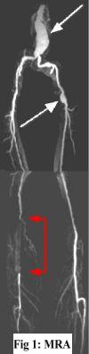 CLINICAL PRESENTATION: This 77-year-old diabetic patient presented to the office of Drs. Mary Toft and Gary Grubb with 2-week history of increasing leg pain with ambulation. Vascular claudication was clinically suspected and the patient was referred to AIC by Dr. Toft for an MRA run-off. *